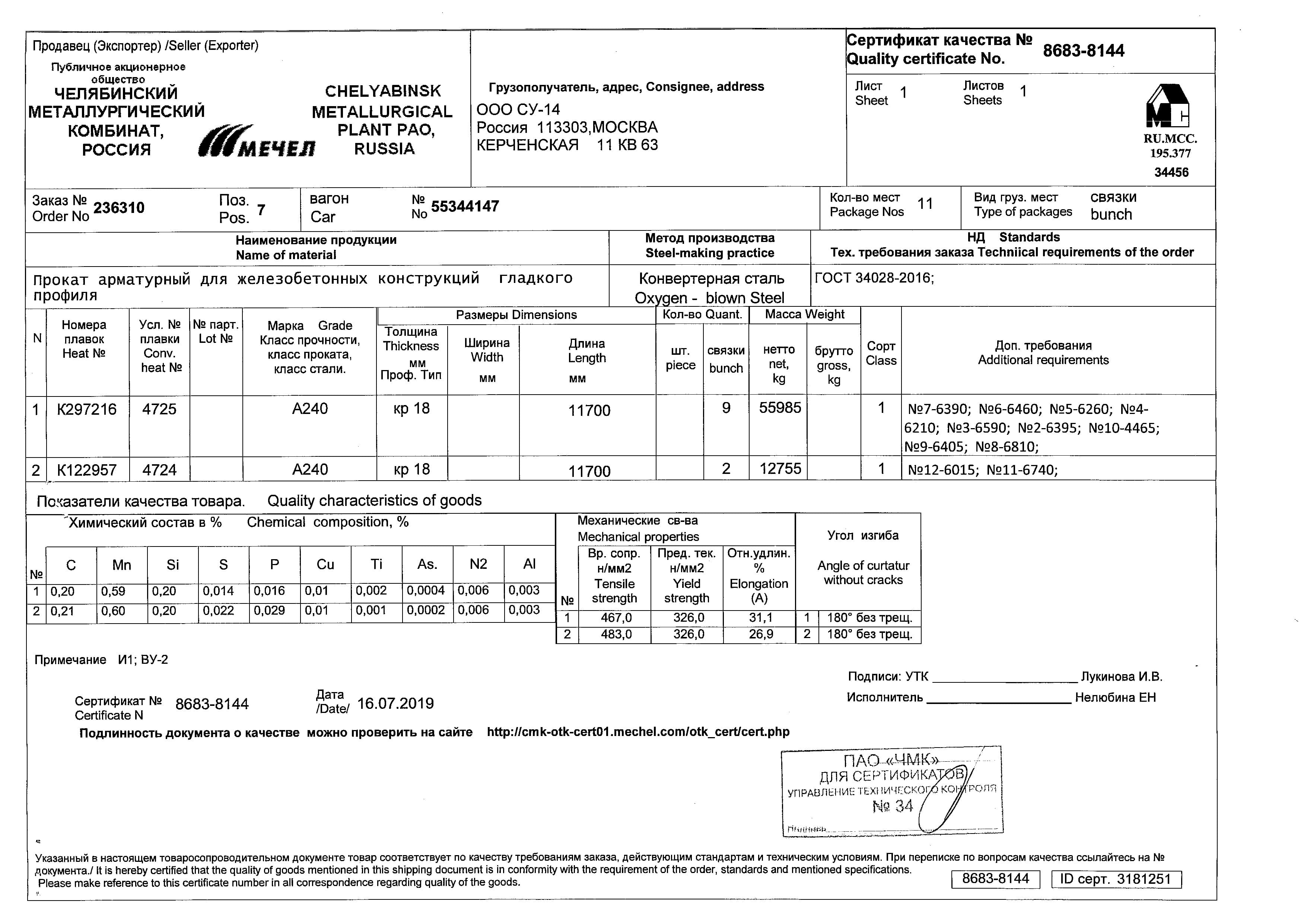 С каждой товарной позицией мы предоставляем все сертификаты и паспорта качества, а также товарно-транспортную накладную.