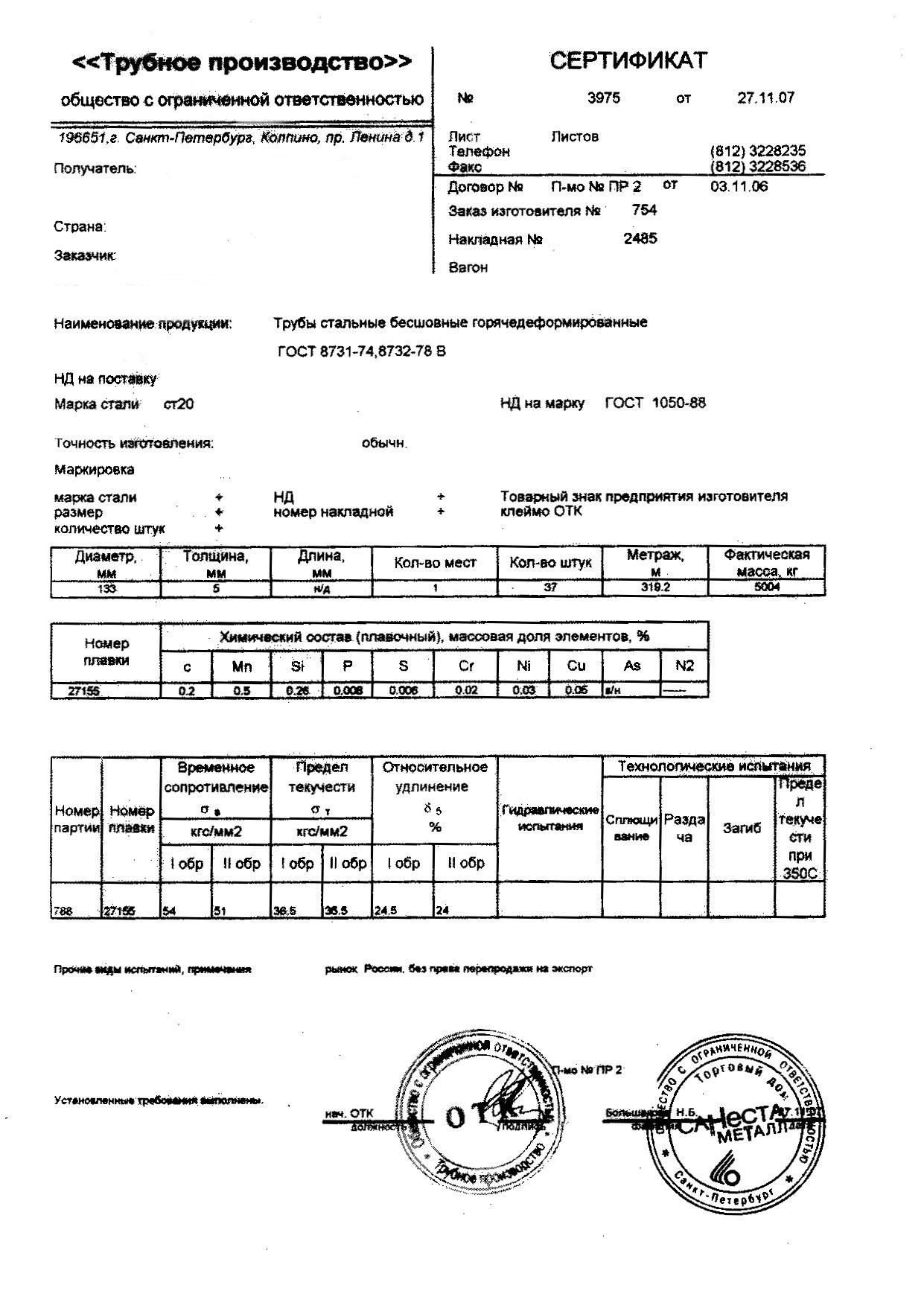 С каждой товарной позицией мы предоставляем все сертификаты и паспорта качества, а также товарно-транспортную накладную.