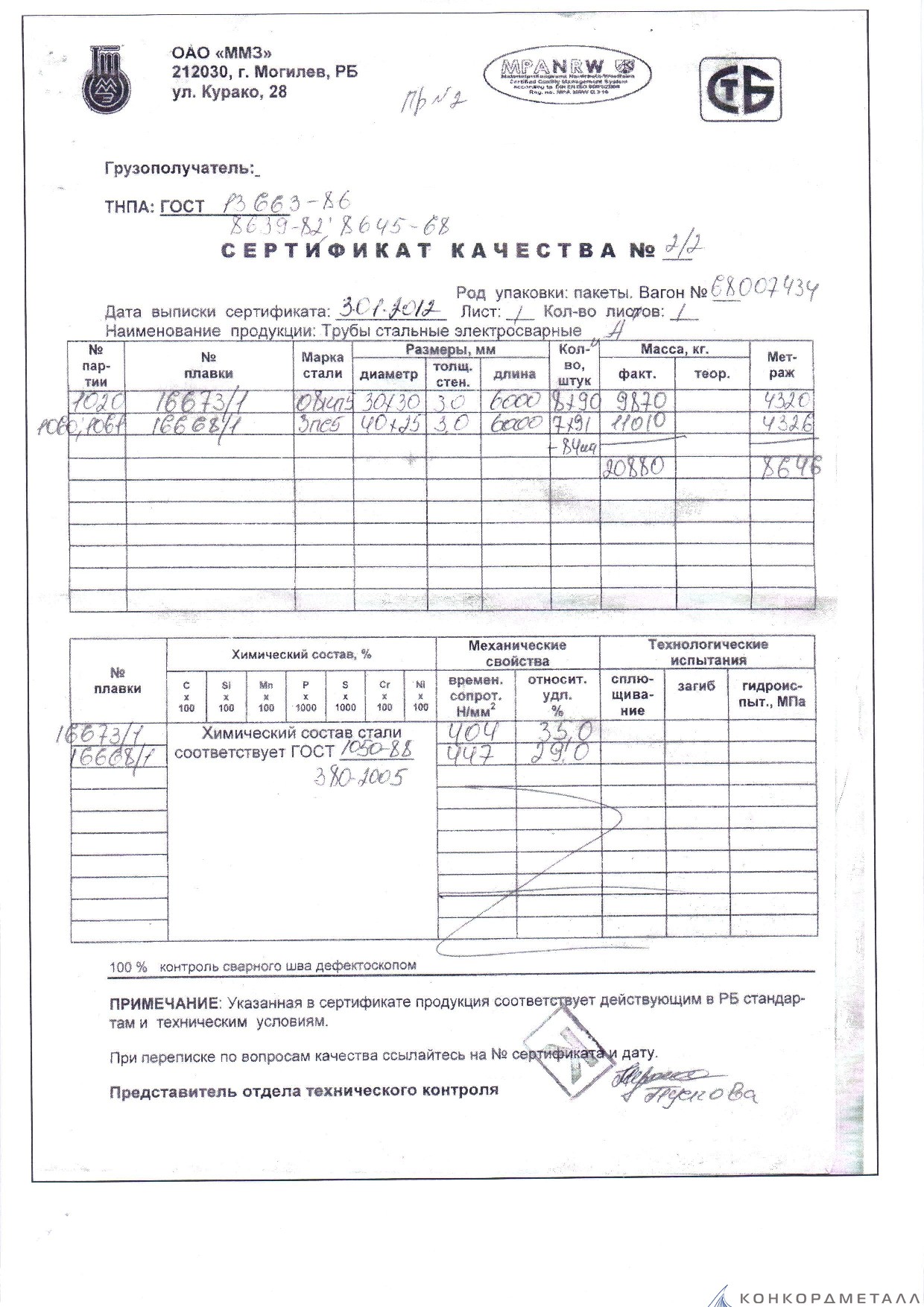 С каждой товарной позицией мы предоставляем все сертификаты и паспорта качества, а также товарно-транспортную накладную.